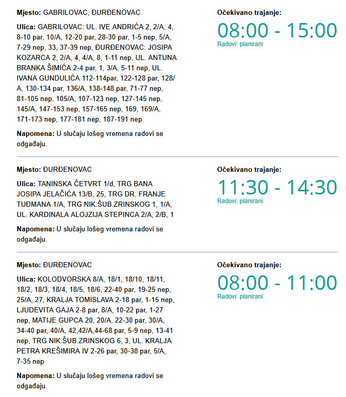 Danas bez struje u Đurđenovcu i Gabrilovcu Piše: Siniša Kulišić23. travnja 2026.23. travnja 2026. Kako upozoravaju iz HEP-a, zbog radova na električnoj mreži danas (četvrtak, 23. 4. 2026.) će predvidivo od 08:00 pa do 15:00 sati biti prekida u isporuci električne energije.