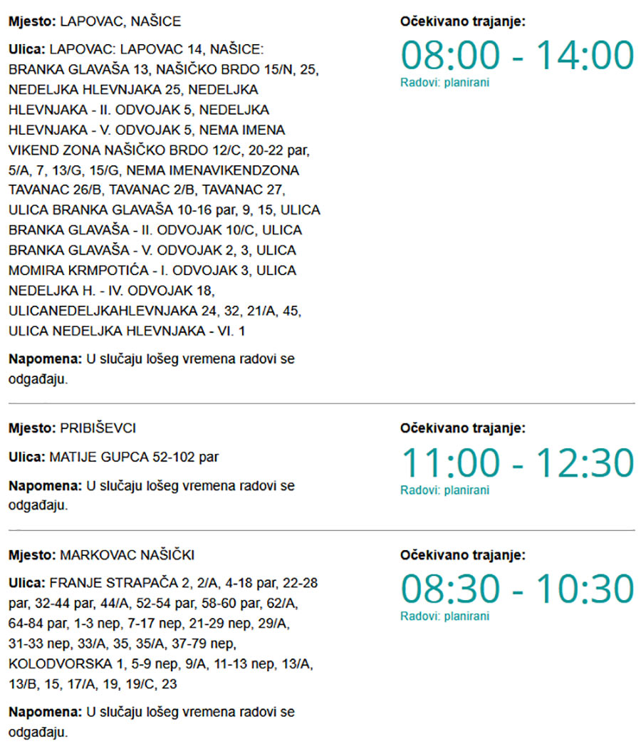 Danas bez struje u Lapovcu, Markovcu Našičkom i Pribiševcima Piše: Siniša Kulišić9. travnja 2026.8. travnja 2026. Kako upozoravaju iz HEP-a, zbog radova na električnoj mreži danas (četvrtak, 9. 4. 2026.) će predvidivo od 08:00 pa do 14:00 sati biti prekida u isporuci električne energije.