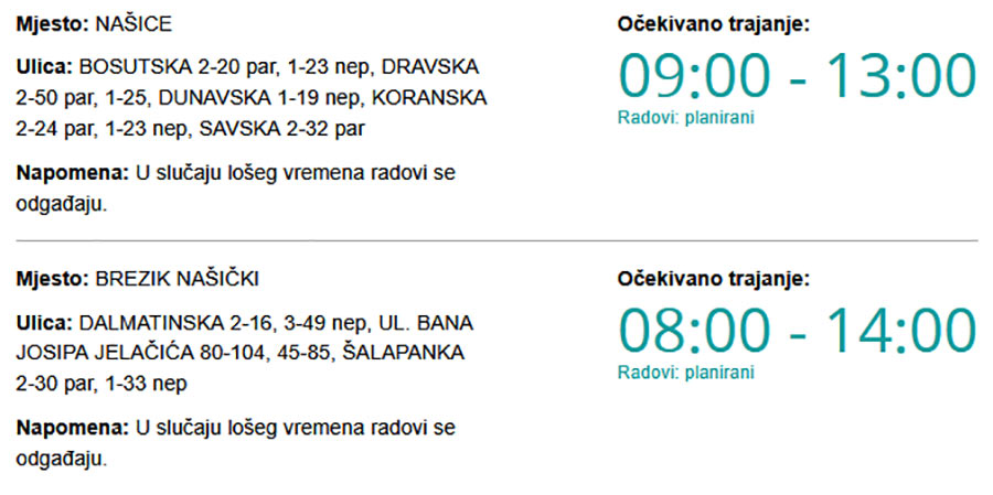 Danas bez struje u Našicama i Breziku Našičkom Piše: Siniša Kulišić26. veljače 2026.25. veljače 2026. Kako upozoravaju iz HEP-a, zbog radova na električnoj mreži danas (četvrtak, 26. 2. 2026.) će predvidivo od 08:00 pa do 14:00 sati biti prekida u isporuci električne energije.