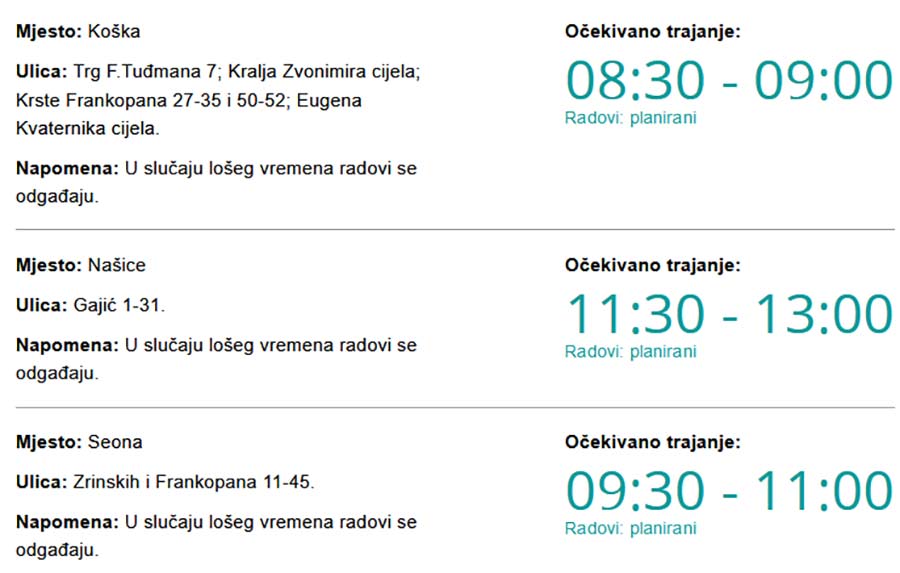 Danas bez struje u Našicama, Koški i Seoni Piše: Siniša Kulišić1. lipnja 2021. Kako upozoravaju iz HEP-a, zbog radova na električnoj mreži danas (utorak, 01. 06. 2021.) će predvidivo od 08:30 pa do 13:00 sati biti prekida u isporuci električne energije.