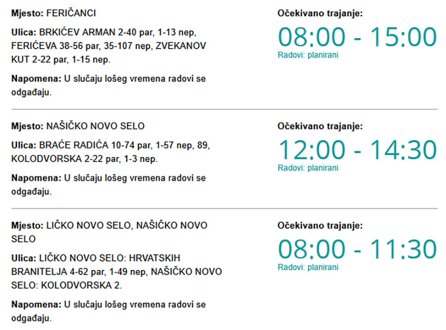 Danas bez struje u Našičkom Novom Selu, Ličkom Novom Selu i Feričancima Piše: Siniša Kulišić15. travnja 2026.14. travnja 2026. Kako upozoravaju iz HEP-a, zbog radova na električnoj mreži danas (srijeda, 15. 4. 2026.) će predvidivo od 08:00 pa do 15:00 sati biti prekida u isporuci električne energije.