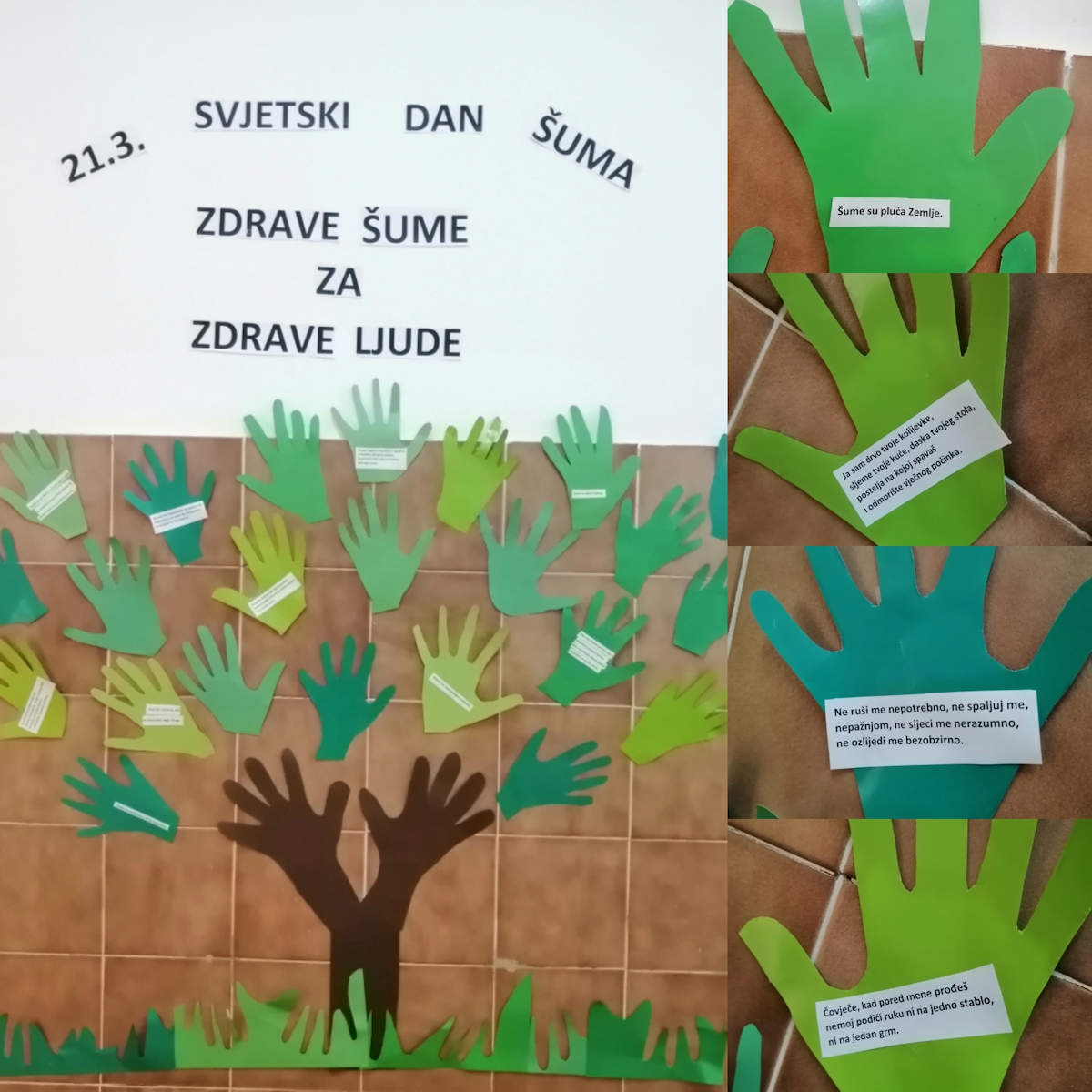 Prvi dan proljeća, 21. ožujka, ujedno se slavi i kao Međunarodni dan šuma. Prilika je to da osvijestimo važnost i vrijednost šuma za sve stanovnike našeg planeta. Učenici posebnog razrednog odjela OŠ Josipa Jurja Strossmayera svoje su radove poslali tvrtki Hrvatske šume d.o.o. koja ih je ponosno objavila na njihovim mrežnim stranicama, a zahvalili su se i učiteljici Ivani te asistentici Magdaleni što su se potrudile da radovi ne prođu nezapaženo.