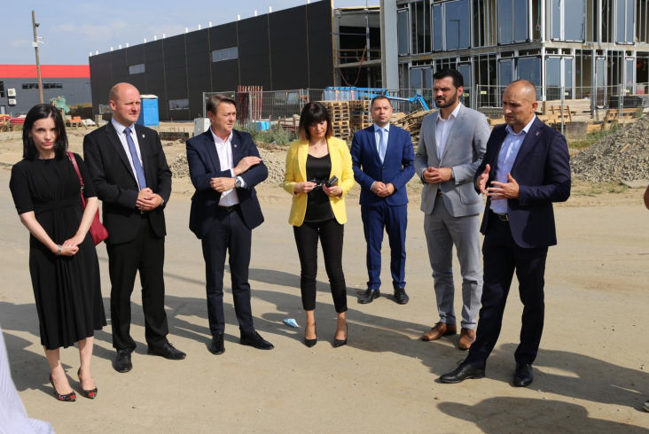 Gradilište Regionalnog distribucijskog centra za voće i povrće u Eko industrijskoj zoni Nemetin u Osijeku danas (9. srpnja 2021. godine) sa suradnicima su obišli župan Osječko – baranjske županije Ivan Anušić, ministrica poljoprivrede Marija Vučković, ministrica regionalnog razvoja i fondova EU Nataša Tramišak i zamjenik gradonačelnika Grada Osijeka Dragan Vulin.
