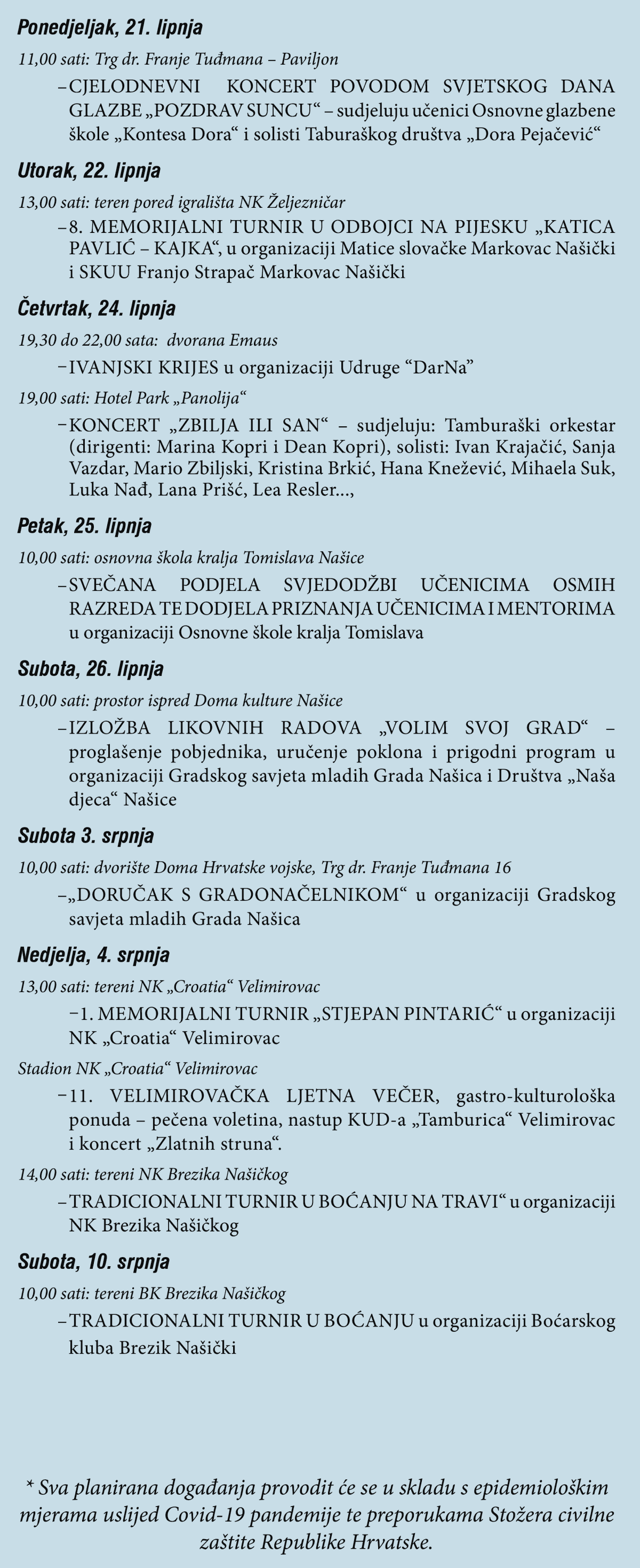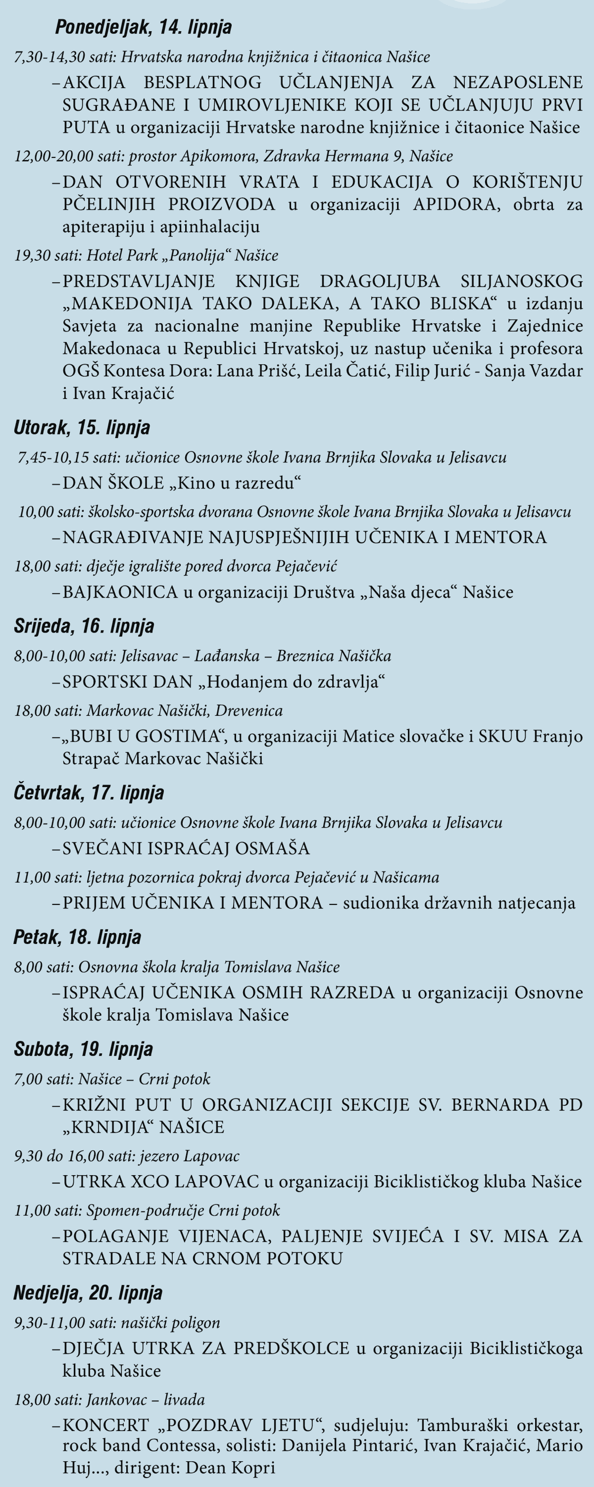 Kompletan program proslave Dana Grada Našica