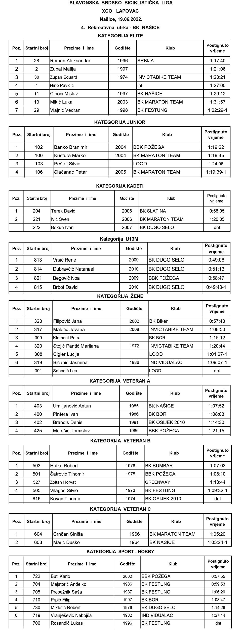 Danas smo na Lapovcu otvorili utrku 4. kola Slavonske brdsko biciklističke lige koja ima međunarodni karakter. Natječu su biciklisti iz Srbije, Mađarske te iz cijele Hrvatske, a održava se u sklopu obilježavanja Dana grada Našica. Izuzetno mi je drago što je Biciklistički klub Našice uspio organizirati ovu utrku i ponosan sam na njih.” – izjavio je gradonačelnik Kašuba istaknuvši kako je i Grad jedan od pokrovitelja.