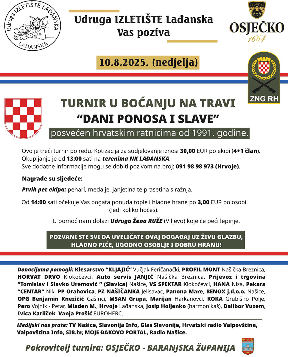 Najava turnira u boćanju u Lađanskoj „Dani ponosa i slave” Piše: Siniša Kulišić6. kolovoza 2025.5. kolovoza 2025.