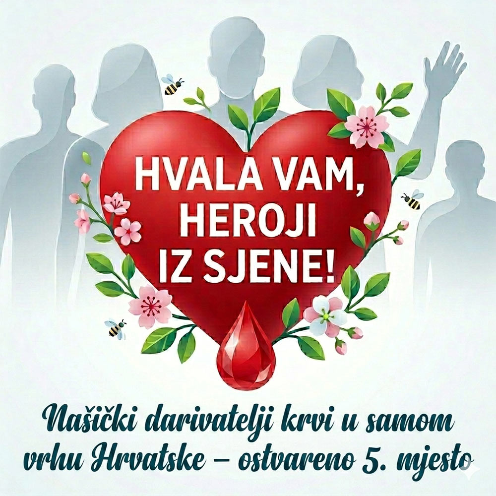 Dobrovoljno darivanje krvi jedan je od najplemenitijih oblika solidarnosti jer jednom dozom krvi mogu biti spašena čak tri ljudska života. Svaki darivatelj zato ima neprocjenjivu ulogu u društvu – svojim nesebičnim činom izravno pomaže onima kojima je pomoć najpotrebnija te pridonosi stabilnosti zdravstvenog sustava i sigurnosti cijele zajednice. Iz Crvenog križa Našice zahvalili su svim darivateljima na humanosti, plemenitosti i spremnosti da pomognu drugima, istaknuvši kako bez njih ovakav rezultat ne bi bio moguć. Poručili su i kako će nastaviti razvijati sustav dobrovoljnog darivanja krvi te poticati građane da se uključe u ovu iznimno važnu i plemenitu akciju.