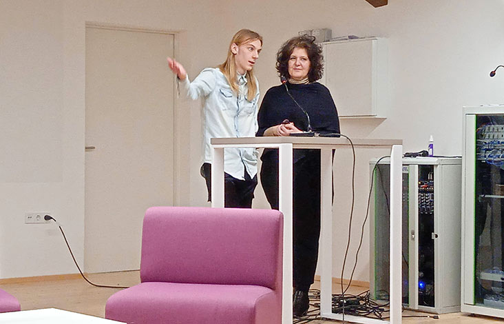 Konferencija je u punoj konferencijskoj sali započela predstavljanjem projekta, Erudeska i Youthpass-a, te istraživanja o informiranosti mladih na temelju ankete provedene između ostaloga i u našoj školi. Slijedila je panel diskusija koju su vodile Sanja Vuković, direktorica PRONI Centra, svojevremeno predsjednica ERYICE – Europske agencije za informiranje i savjetovanje mladih, Dijana Antunović Lazić izvršna direktorica Europskog doma Vukovar, te Lidija Žaper, ravnateljica Ekonomske i upravne škole iz Osijeka.