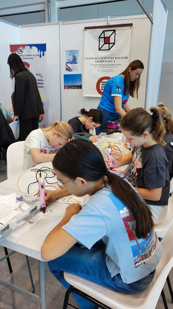 ZTK Grada Našica predstavila se radom svog Centra tehničke kulture te organizirala niz atraktivnih radionica koje su vodili mentori iz različitih sekcija: 3D modeliranje i printanje, modeliranje 3D olovkama, oblikovanje i modeliranje stiropora, izrada narukvica te sastavljanje elektroničkih sklopova. Radionice su, kao i svake godine, privukle velik broj sudionika – više od 700 djece i mladih – koji su aktivno sudjelovali u svim aktivnostima. Posjete sajmu bile su izvrsno organizirane – škole su redovito dovodile svoje učenike, a mnogi su se posjetitelji vraćali i u pratnji roditelja, djedova i baka. Velik interes pokazao je koliko su radionice bile zanimljive, poučne i poticajne.