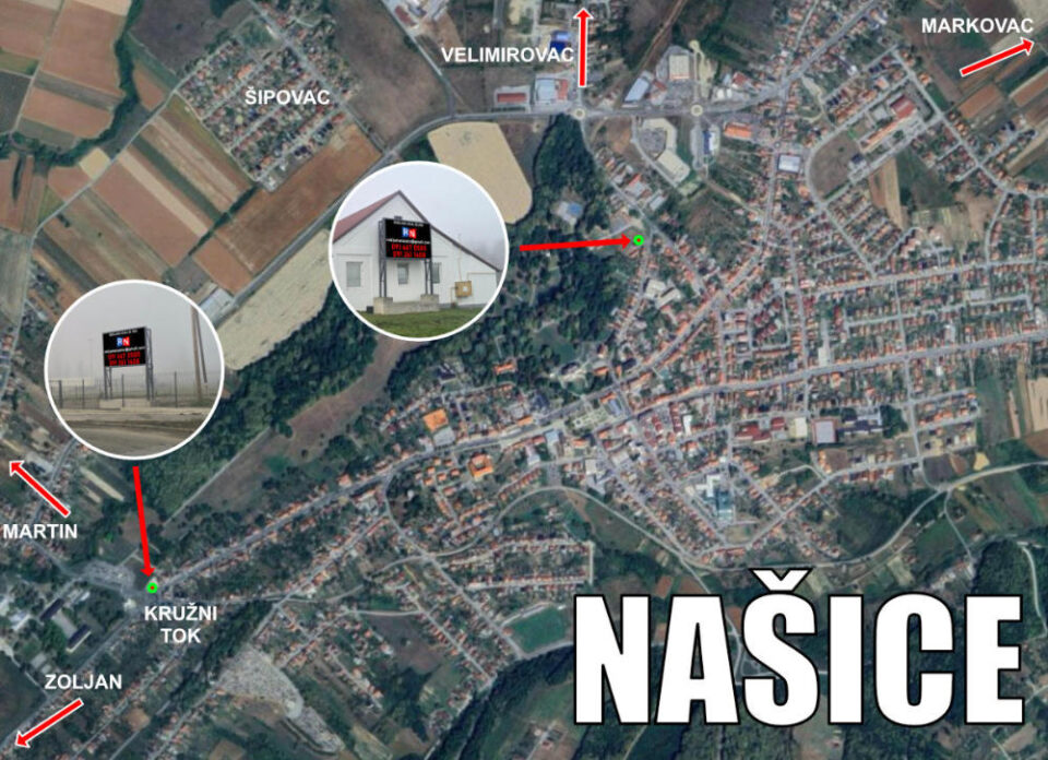 Za sada smo identificirali dvije prioritetne lokacije na području grada Našica. Prva se nalazi u zapadnom dijelu grada, neposredno uz kružni tok u blizini vojarne, na izrazito frekventnoj prometnici s velikim dnevnim protokom vozila i visokom razinom vidljivosti. Druga lokacija smještena je u sjevernom dijelu Našica, također uz važan prometni pravac koji povezuje gradske i prigradske zone. Obje lokacije odabrane su zbog dobre prometne povezanosti, visoke frekvencije prometa i lakog pristupa, što ih čini izuzetno atraktivnima s aspekta dostupnosti i vidljivosti. Sve navedene lokacije jasno su prikazane na karti koju prilažemo u nastavku.