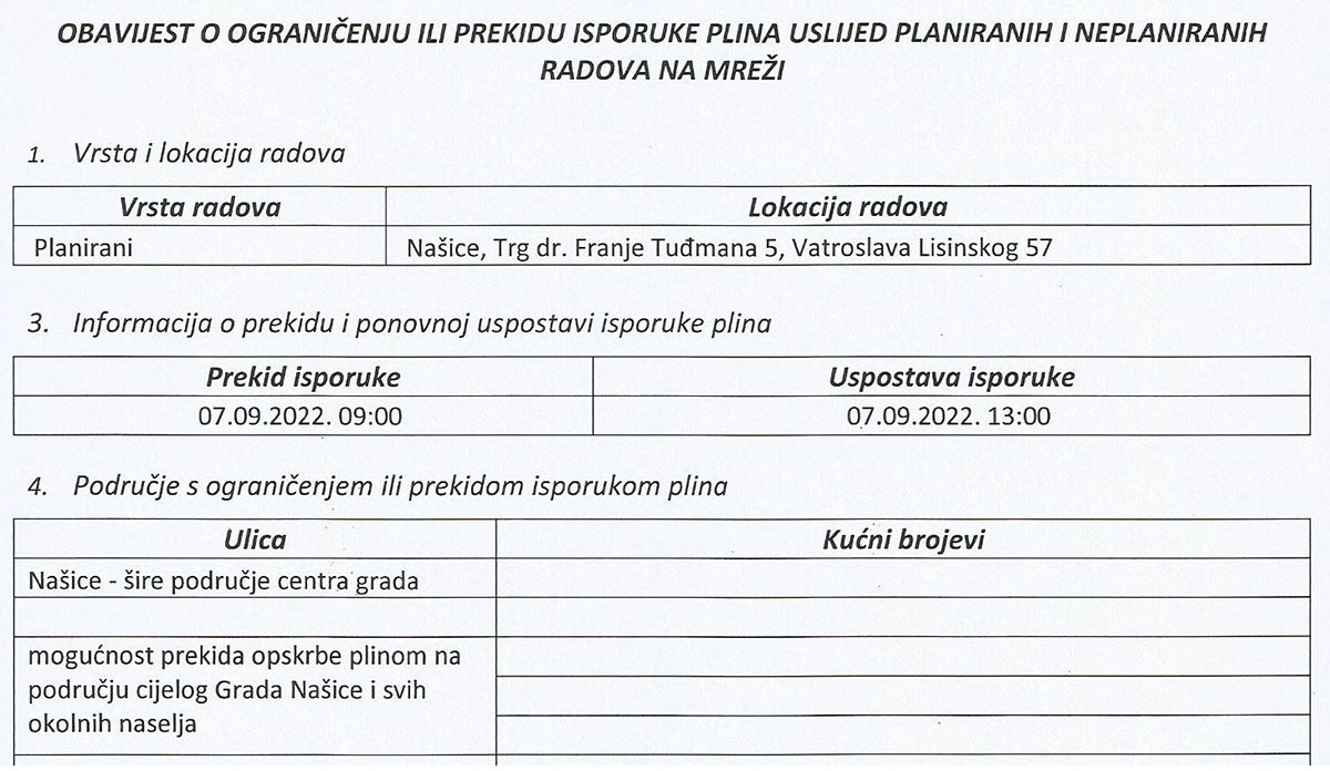 Danas bez struje u Našicama, Đurđenovcu, Našičkom Novom Selu i Podgorju Bračevačkom