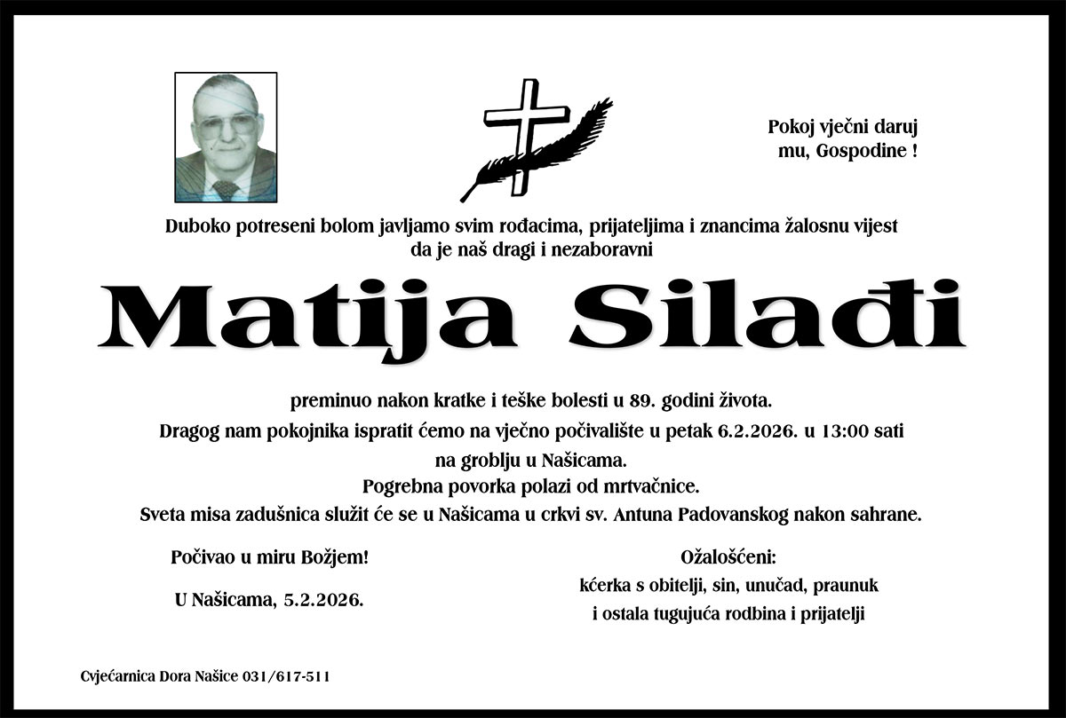 Ovim putem redakcija TV Našica obitelji i prijateljima iskazuje iskrenu sućut. Kako su ovo najteži trenuci za obitelj, TV Nasice.com ovakve objave NE NAPLAĆUJE i sve vezano za njih je BESPLATNO. Dovoljno je da nam se javite na službeni e-mail tvnasice@gmail.com te pošaljete smrtovnicu.