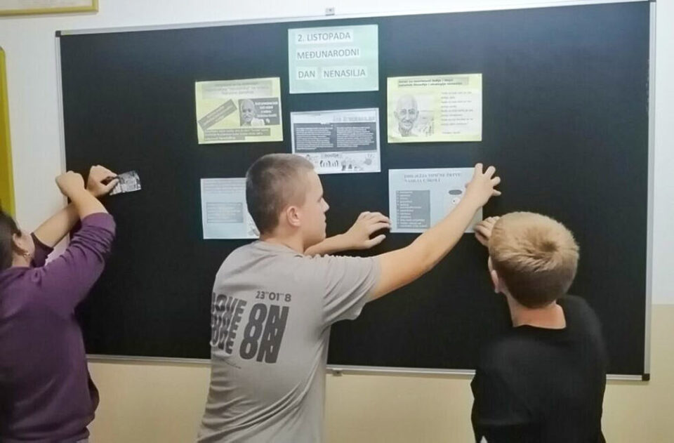 U četvrtak, 2. listopada 2025. godine, učenici i nastavnici Srednje škole Josipa Kozarca Đurđenovac obilježili su Međunarodni dan nenasilja, koji se u svijetu slavi na rođendan Mahatme Gandhija, najpoznatijeg zagovornika nenasilnog djelovanja. Tom prigodom, učenici smjera šumarski tehničar zajedno s nastavnicima uredili su pano u školskom hodniku, na kojem su predstavili definicije i oblike nenasilja, metode nenasilnog djelovanja te načine na koje se može razvijati empatija i međusobno razumijevanje. Aktivnost je bila i poučna i kreativna, a učenike je potaknula na promišljanje o važnosti dijaloga, uvažavanja i razumijevanja u svakodnevnom životu. Poruka obilježavanja bila je jasna – nasilje nikada nije rješenje, dok su mir, poštovanje i tolerancija temeljne životne vrijednosti koje svi trebamo njegovati.