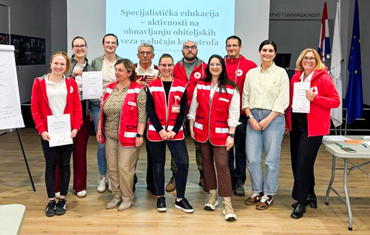 Služba traženja Hrvatskog Crvenog križa uspješno je provela dvije dvodnevne specijalističke edukacije pod nazivom „Aktivnosti na obnavljanju obiteljskih veza u slučaju katastrofa“. Program je održan u dva termina, od 15. do 16. te od 22. do 23. travnja, a okupio je ukupno 22 sudionika iz 19 županijskih i gradskih društava. Primarni cilj ovih edukacija bio je jačanje kapaciteta interventnih timova za pružanje podrške migrantima i izbjeglicama, što je ostvareno u sklopu projekta koji financira Švicarski Crveni križ.