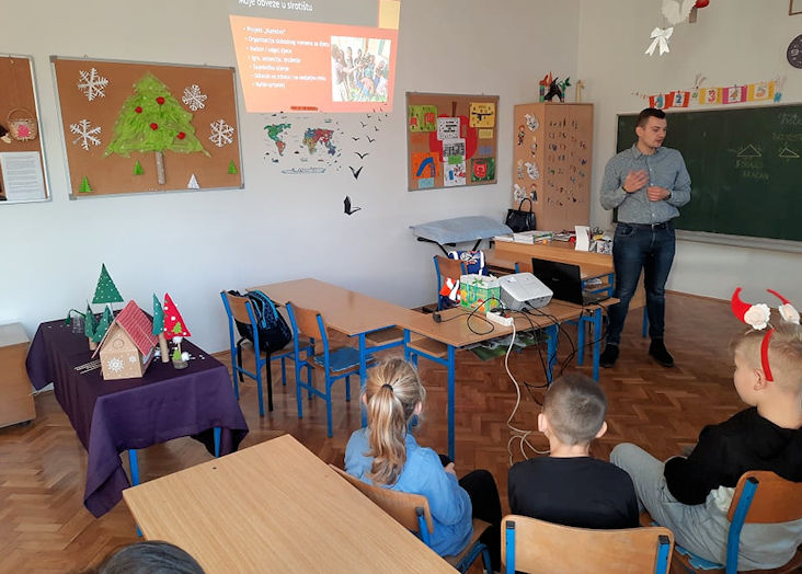 Prije same prodajne izložbe školu je posjetio i Stjepan Đanić, volonter udruge „Kolajna ljubavi“, koji se nedavno vratio iz Tanzanije. Tijekom boravka u školi održao je predavanje o svojem boravku u Sirotištu sv. Ante, te ispričao mnoge zanimljive priče koje su bile dodatna motivacija za rad. Tijekom razgovora sa Stjepanom, zaključili su kako bi bilo dobro novčana sredstva uplatiti za potrebe školovanja jednog djeteta iz sirotišta, tj. sudjelovati u projektu „Kumstvo“. Projekt “Kumstvo” povezuje kumove iz Hrvatske s djecom iz Tanzanije koja žive u iznimno lošim uvjetima, potječu iz mnogobrojnih i siromašnih obitelji ili su siročad. Kumovi doniraju sredstva potrebna za školovanje djeteta, te mu na taj način osiguravaju bolju budućnost. Prodajnom izložbom božićnih ukrasa, učenici i učiteljice Silvana Šarić i Ljubica Đurić prikupili su dovoljno sredstava za školovanje jednog djeteta i s nestrpljenjem iščekuju realizaciju projekta.
