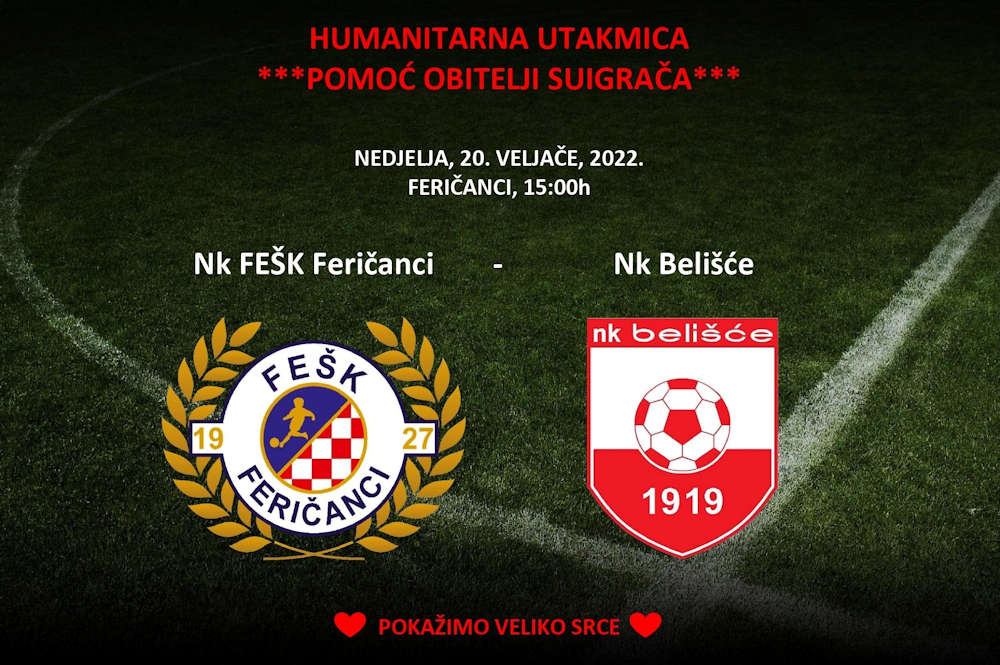 Nogometni klub Fešk Feričanci organizira humanitarnu utakmicu, u sklopu proljetnih priprema, u nedjelju, 22. veljače, 2022., u Feričancima s početkom u 15 sati. Utakmica će biti odigrana protiv pretendenta na naslov prvaka 3.HNL istok, NK Belišće.