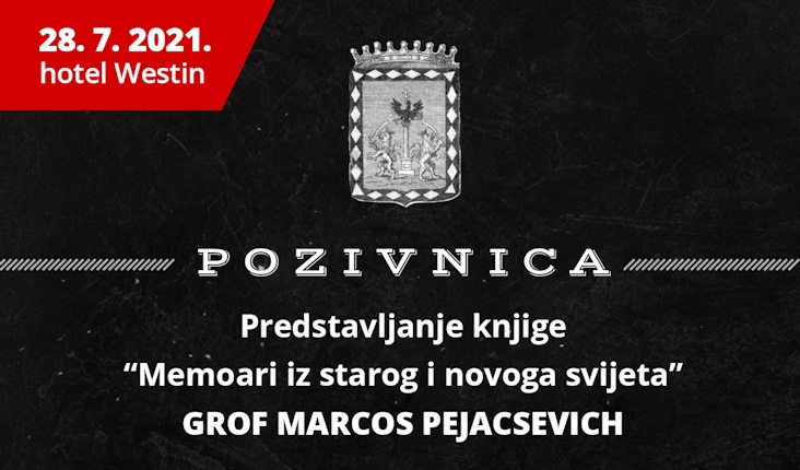 Sutra, 28. srpnja, u hotelu Westin u Zagrebu, s početkom u 18 sati, održat će se predstavljanje knjige „Memoari staroga i novoga svijeta” grofa Marcosa Pejacsevicha praunuka hrvatskih banova Ladislava i Teodora koji potječu iz našičke loze Pejacsevicha.