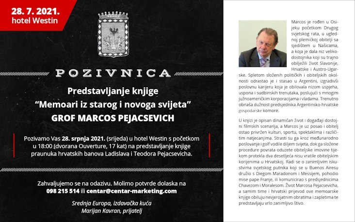 Poziv na predstavljanje knjige grofa Marcosa Pejacsevicha