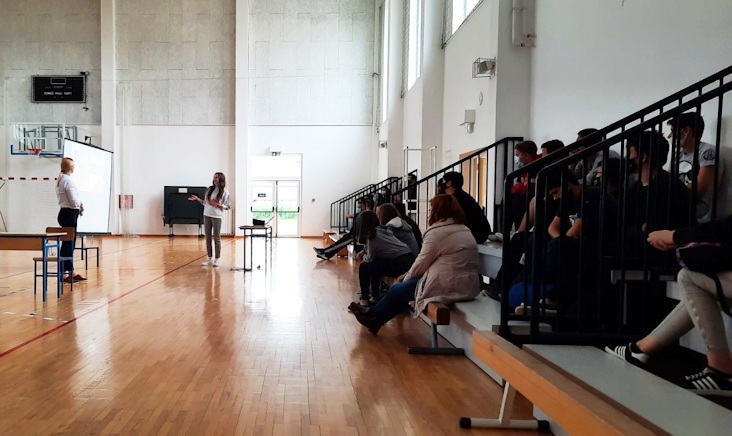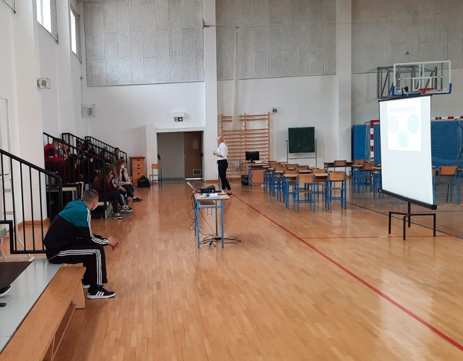 U školskoj sportskoj dvorani Osnovne škole Hinka Juhna Podgorač, stručna suradnica pedagoginja Nina Erdeš Babić održala je interaktivno predavanje za učenike osmih razreda na temu profesionalnog informiranja i usmjeravanja učenika: Spremni i sretni u srednju!