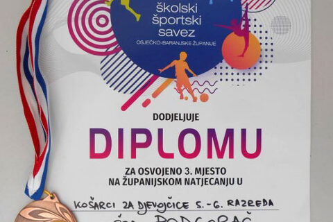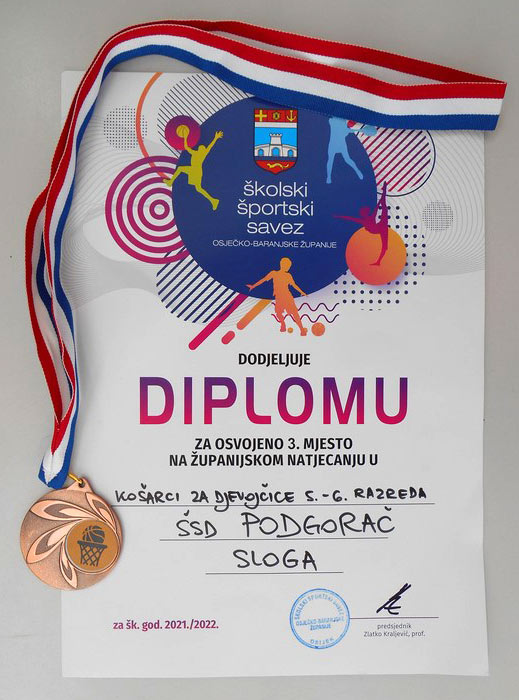 U ponedjeljak (9.5.2022.) je u osječkoj Osnovnoj školi Vladimira Becića održano županijsko natjecanje u košarci za učenice petih i šestih razreda. Našičko područje uspješno su predstavljale učenice iz Osnovne škole Hinka Juhna Podgorač, osvojivši treće mjesto i brončane medalje, plasiravši se odmah iza dvije osječke osnovnoškolske ekipe.