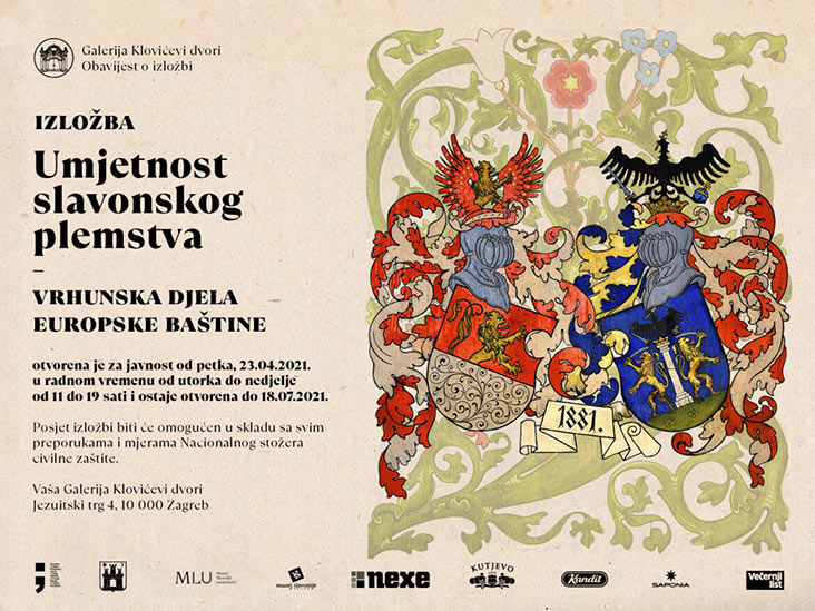 Kako navode iz škole izložba je realizirana u partnerskoj suradnji Galerije Klovićevi dvori s Muzejom likovnih umjetnosti u Osijeku i Muzejom Slavonije u Osijeku, a sintetizira dosadašnja istraživanja likovne baštine plemićkih obitelji novovjekovnoga razdoblja na području istočne Hrvatske. Na izložbi se predstavljaju djela likovne umjetnosti vezana uz najznačajnije plemićke obitelji istočne Hrvatske (npr. Adamović, Cseh, Eltz, Odescalchi, Pejačević, Hilleprand von Prandau, Normann-Ehrenfels, Mihalović, Janković Voćinski, Janković Daruvarski…) koje su odigrale važnu ulogu na gospodarskom, političkom i kulturnom planu prostora današnje istočne Hrvatske. Autorice izložbe su doc. dr. sc. Jasminka Najcer Sabljak (Akademija za umjetnost i kulturu, Osijek) te Silvija Lučevnjak, prof. (Zavičajni muzej Našice).