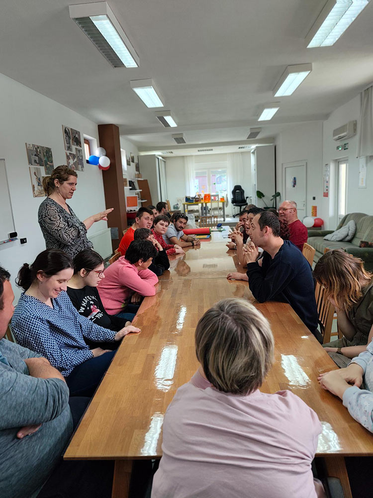 U sklopu 3. godišnjeg programa „Jaglac” – moj drugi dom, u Jaglacu su 13. travnja 2026. godine održane dvije paralelne radionice stručne podrške koje su proveli partneri iz Obiteljskog centra, Područne službe Virovitičko-podravske. Radionicu za osobe s invaliditetom pod nazivom „Slušam – ne slušam” vodila je edukacijska rehabilitatorica Tamara Sadlovski, dok je socijalna radnica Katarina Grahovac za roditelje i članove obitelji održala radionicu o pravima iz sustava socijalne skrbi. U radu i razgovoru s roditeljima aktivno je sudjelovala i Sandra Matošina Borbaš, upraviteljica Područne službe. Trogodišnji program „Jaglac” – moj drugi dom provodi se od 1. lipnja 2023. do 31. svibnja 2026. godine u partnerstvu s Gradom Orahovicom i Obiteljskim centrom, Područnom službom Virovitičko-podravskom. Program financira Ministarstvo rada, mirovinskoga sustava, obitelji i socijalne politike, a sufinanciraju ga jedinice regionalne i lokalne samouprave. Više o programu: https://udrugamrorah.hr/projekt/projekt-jaglac-moj-drugi-dom/