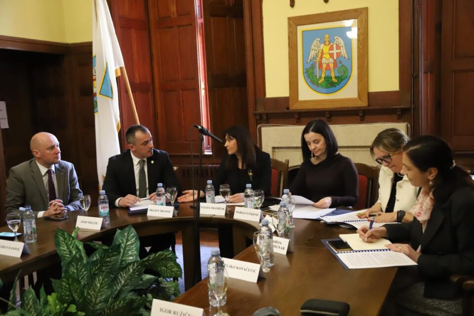 U gradskoj upravi Grada Donjeg Miholjca, danas (13. ožujka 2026. godine) je održan radni sastanak na kojem su uz domaćina, gradonačelnika Dražena Trcovića, nazočili županica Nataša Tramišak, ministrica zaštite okoliša i zelene tranzicije Marija Vučković, zamjenik gradonačelnika Grada Osijeka Dragan Vulin, zamjenici županice Josip Miletić i Goran Ivanović, načelnici općina Vuka, Čepin, Ernestinovo, Erdut, predsjednik i član Uprave Vodovoda Osijek Marko Eljuga i Antonio Lozančić, ravnatelj JU Agencije za upravljanje zaštićenim prirodnim vrijednostima OBŽ Igor Ružička te predsjednik Uprave EKOS-a Branimir Pašić. Na sastanku se razgovaralo o nizu projekata koji se provode u području zaštite okoliša, gospodarenja otpadom te upravljanja vodnim resursima.