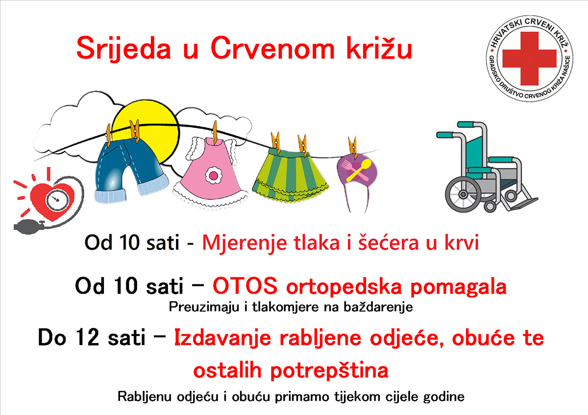 - OTOS je u prostorijama Crvenog križa Našice od 10 sati (zgrada CK Našice, Ulica kralja Tomislava 6)