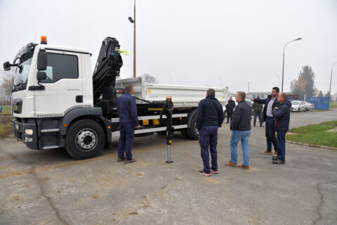 Vozilo, kamion sa trostranim kiper sandukom i hidrauličnom dizalicom, nabavljeno je u sklopu EU projekta “Poboljšanje vodnokomunalne infrastrukture aglomeracije Našice”. Vrijedna je to oprema, kojoj će do kraja projekta biti dodano još nekoliko specijaliziranih vozila i mehanizacije. Prezentacija vozila, vrijednog 1.313.000,00 kuna s PDV-om, održana je u dvorištu Našičkog vodovoda, a prisustvovao joj je gradonačelnik Grada Našica Krešimir Kašuba, iz Upravnog odjela za investicije i prostorno planiranje Magdalena Vidaković – Gelenčir, te zaposlenici Našičkog vodovoda.